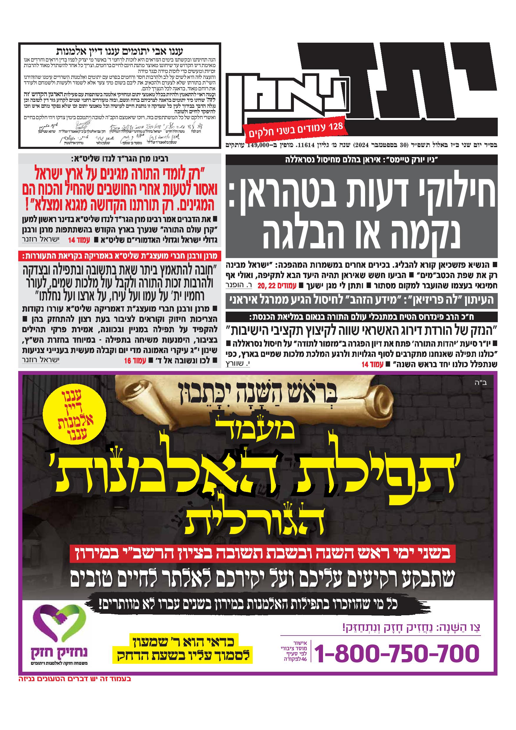 • צפו בכותרות העיתונים החרדים לבוקר יום שלישי