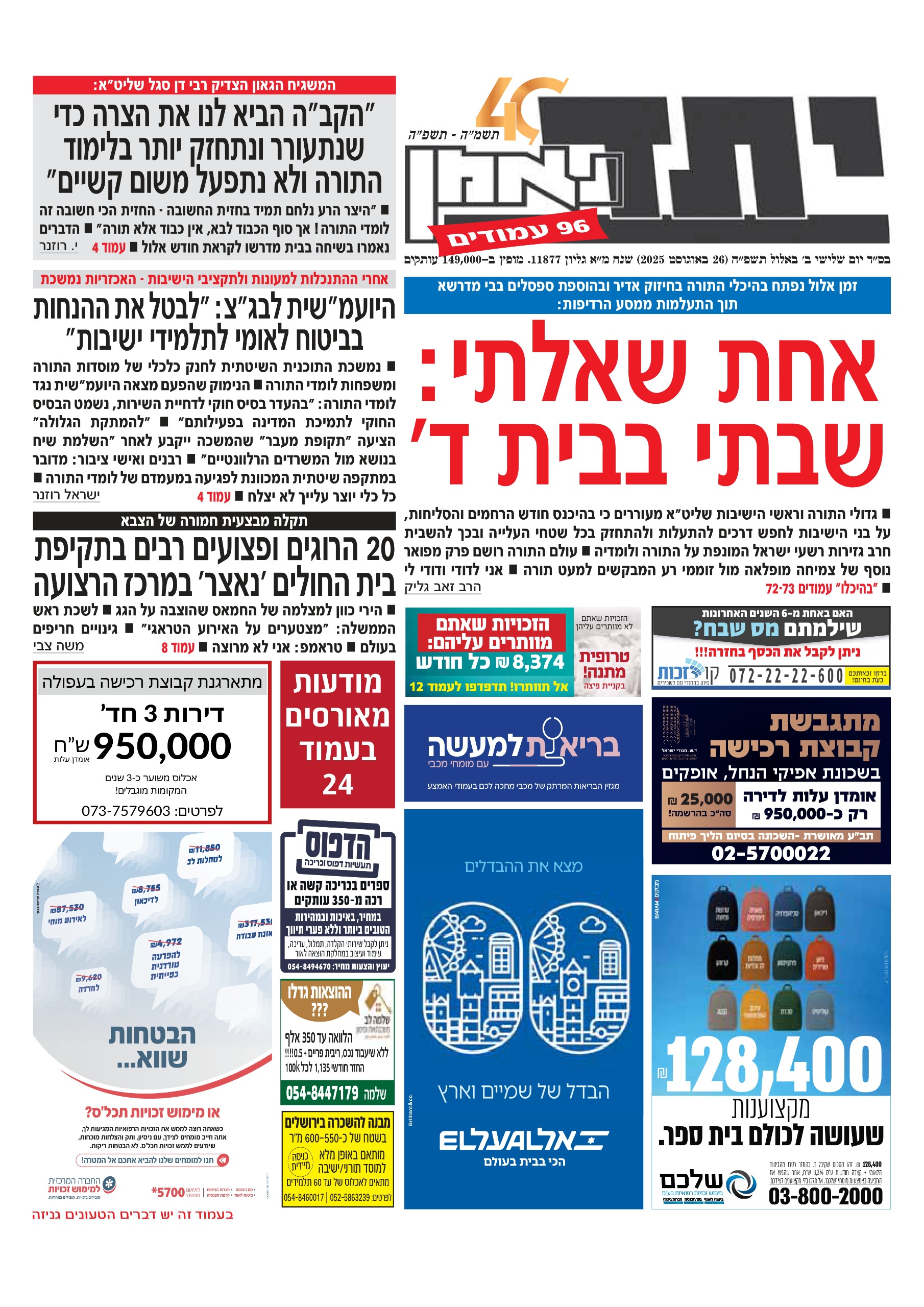 צפו בכותרות העיתונים החרדים לבוקר יום חמישי