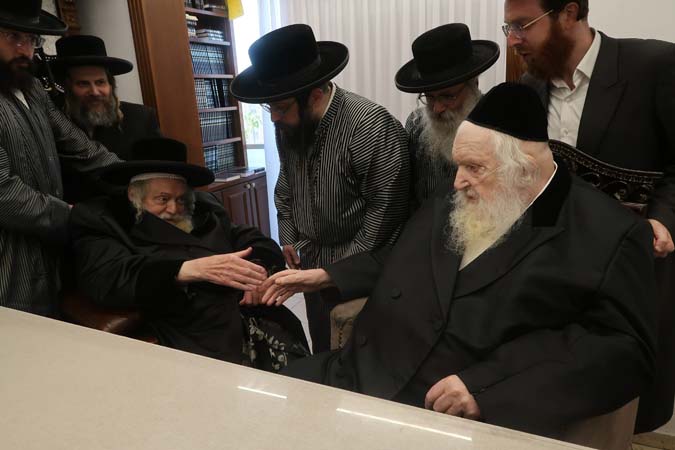 לקראת הימים הנוראים עולים בימים האחרונים אדמורי”ם ורבנים למעונו של מרן פוסק הדור הגר”מ שטרנבוך לברך ולהתברך בברכת השנים.