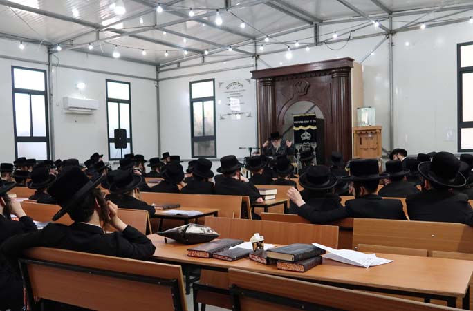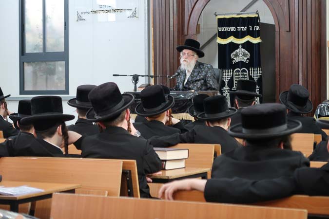האדמו”ר משאץ דרהאביטש בשיחה בהיכל ישיבה לצעירים ‘טשרנוביל’
