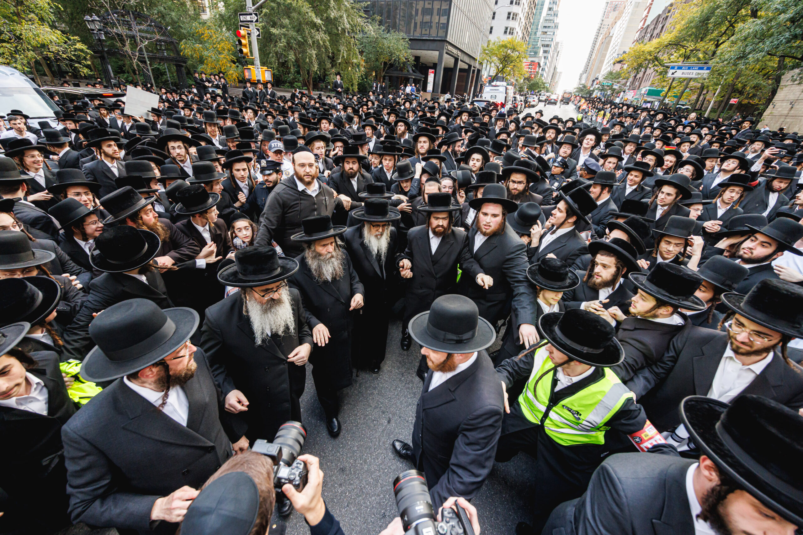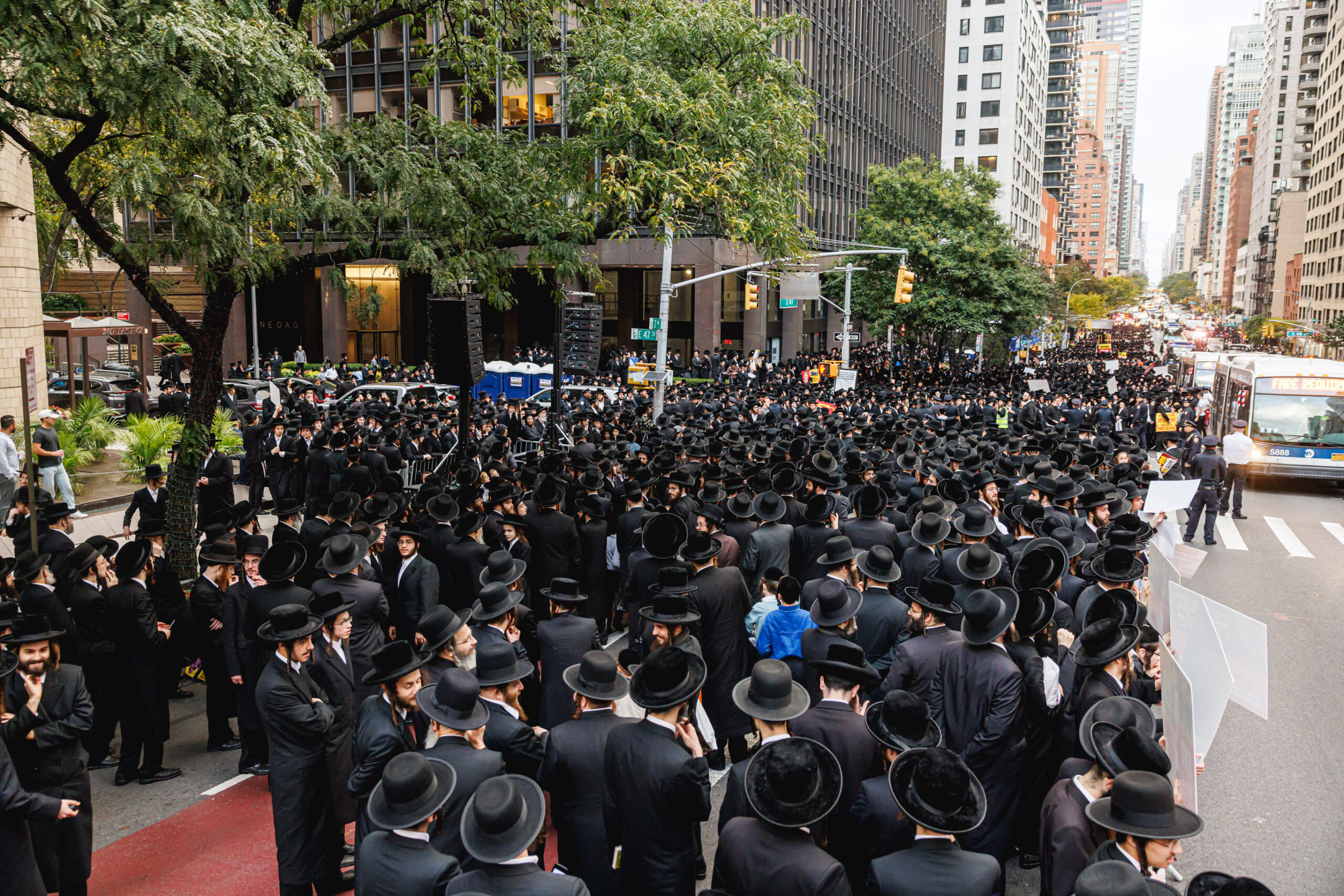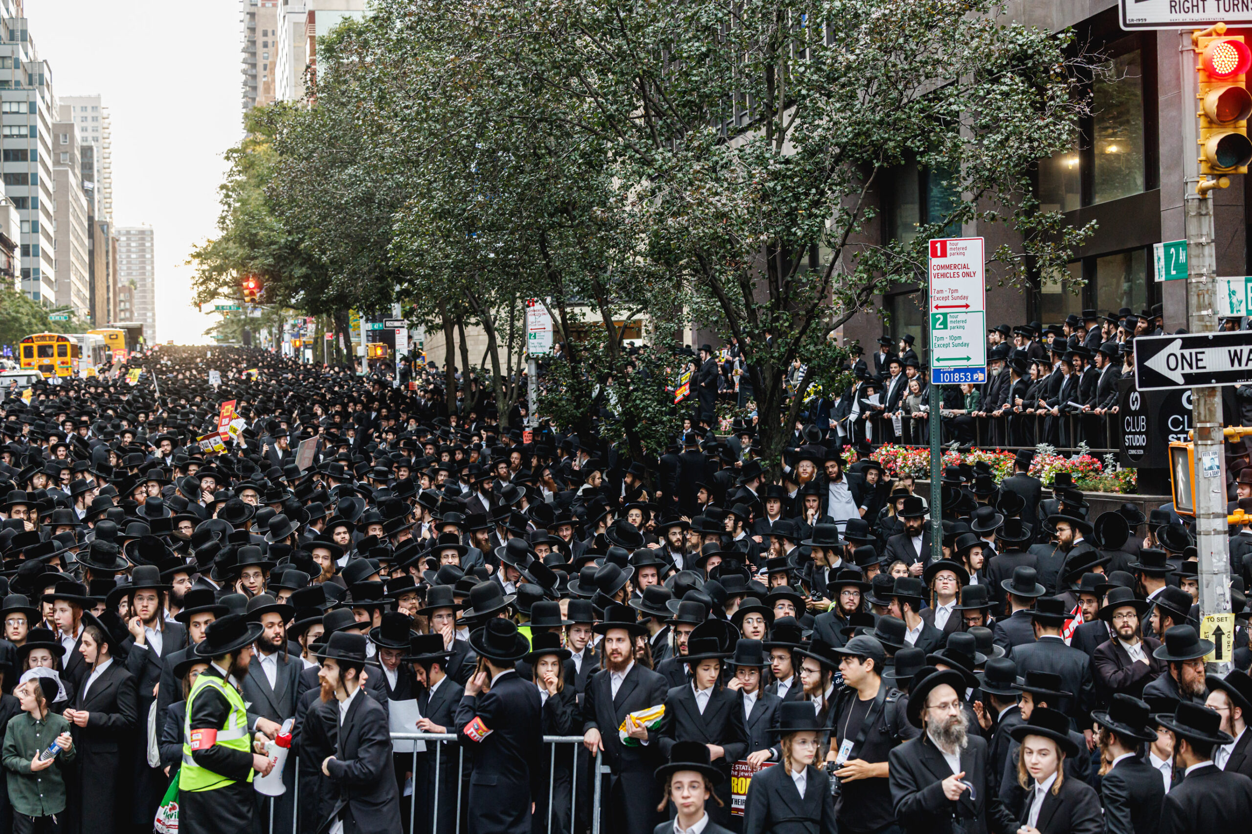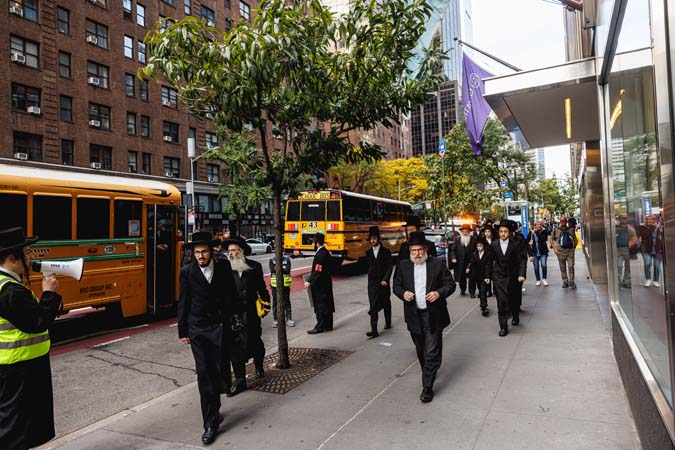 כחלק מההסכמה עם משטרת ניו יורק, השדרה המרכזית לא נחסמה והתאפשרה בה תנועת כלי רב, לצד המפגינים שעמדו על המדרכה לאורך עשרות מטרים. אל ההפגנה הגיעו האדמו”רים מסאטמר שליט”א, וכן האדמו”ר מבאבוב שליט”א, לצד רבנים וראשי ישיבות.