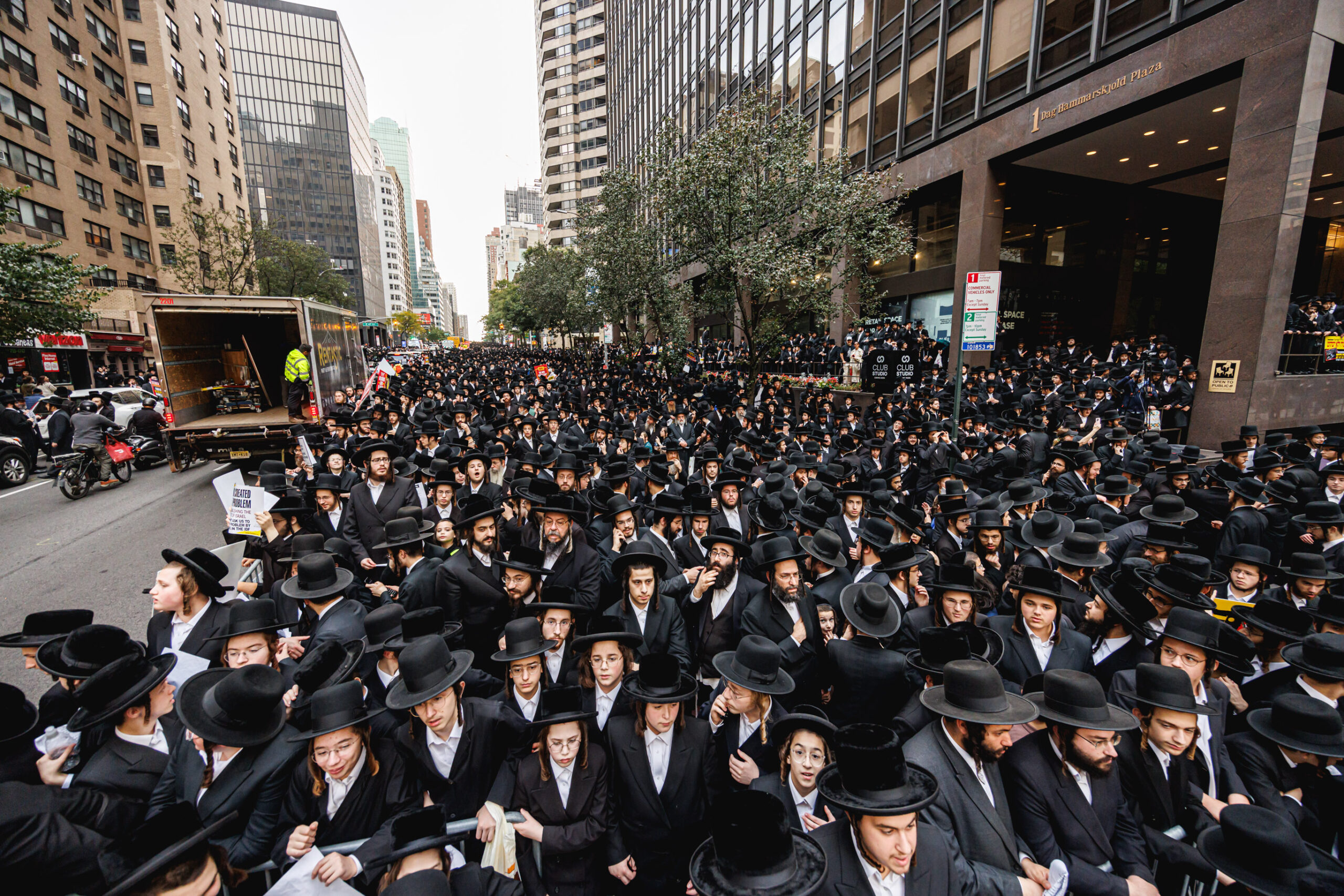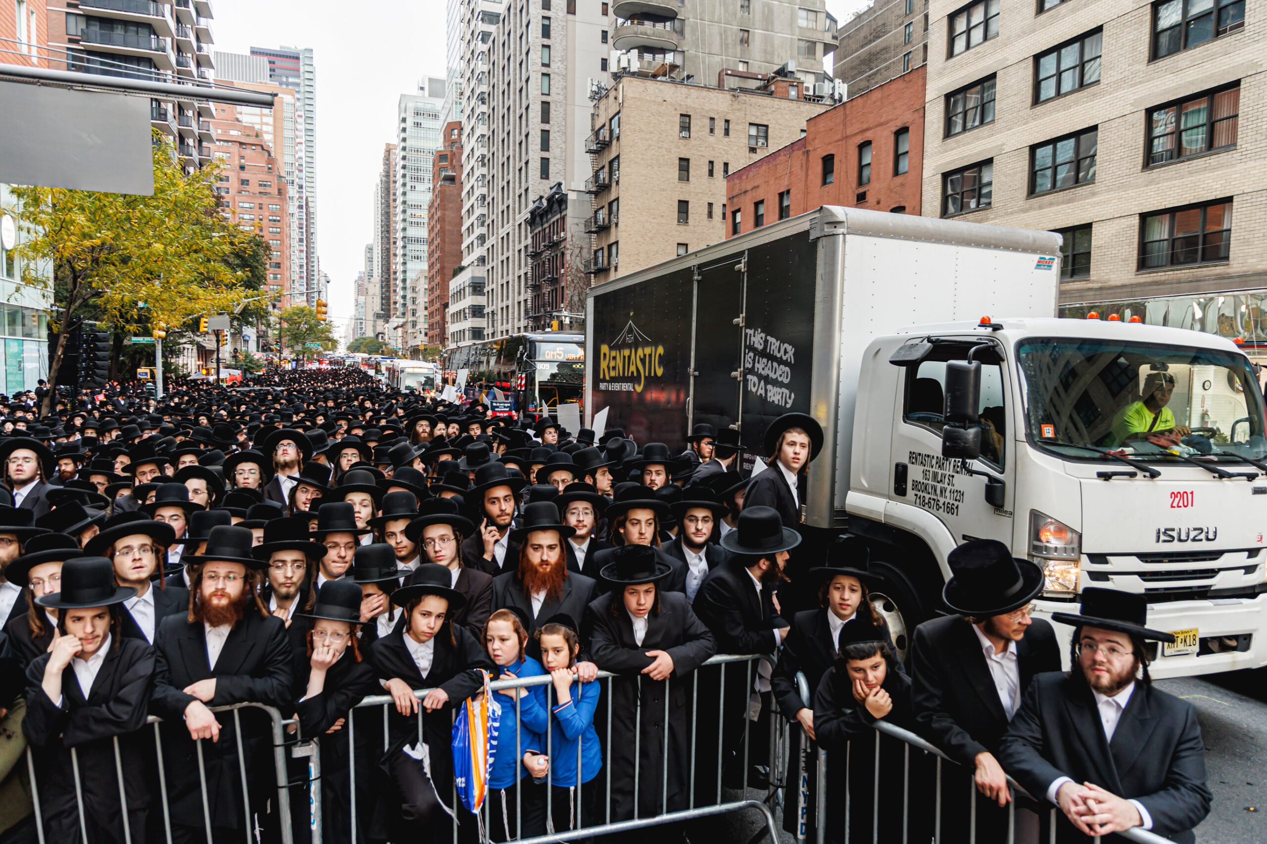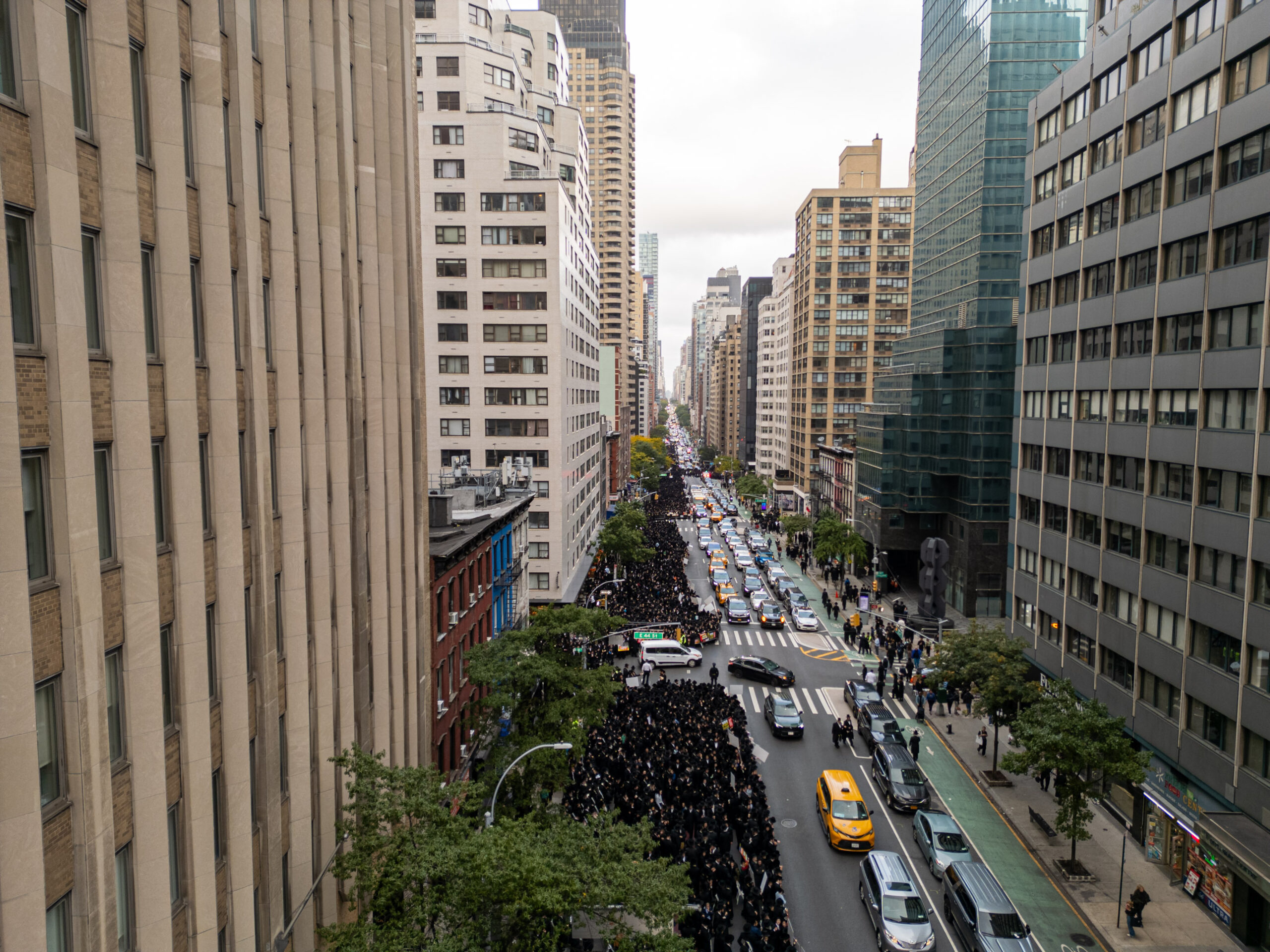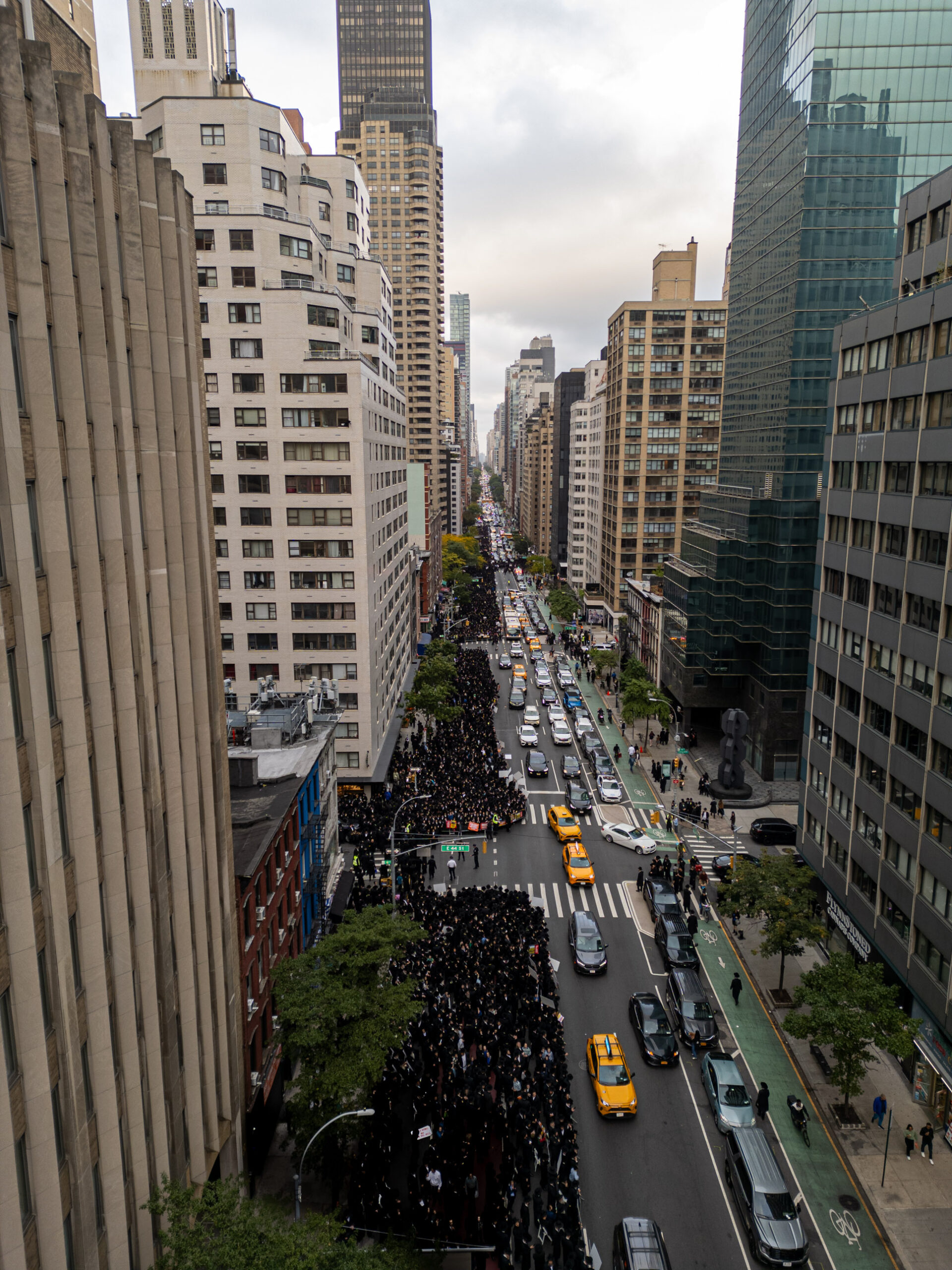 כחלק מההסכמה עם משטרת ניו יורק, השדרה המרכזית לא נחסמה והתאפשרה בה תנועת כלי רב, לצד המפגינים שעמדו על המדרכה לאורך עשרות מטרים. אל ההפגנה הגיעו האדמו”רים מסאטמר שליט”א, וכן האדמו”ר מבאבוב שליט”א, לצד רבנים וראשי ישיבות.
