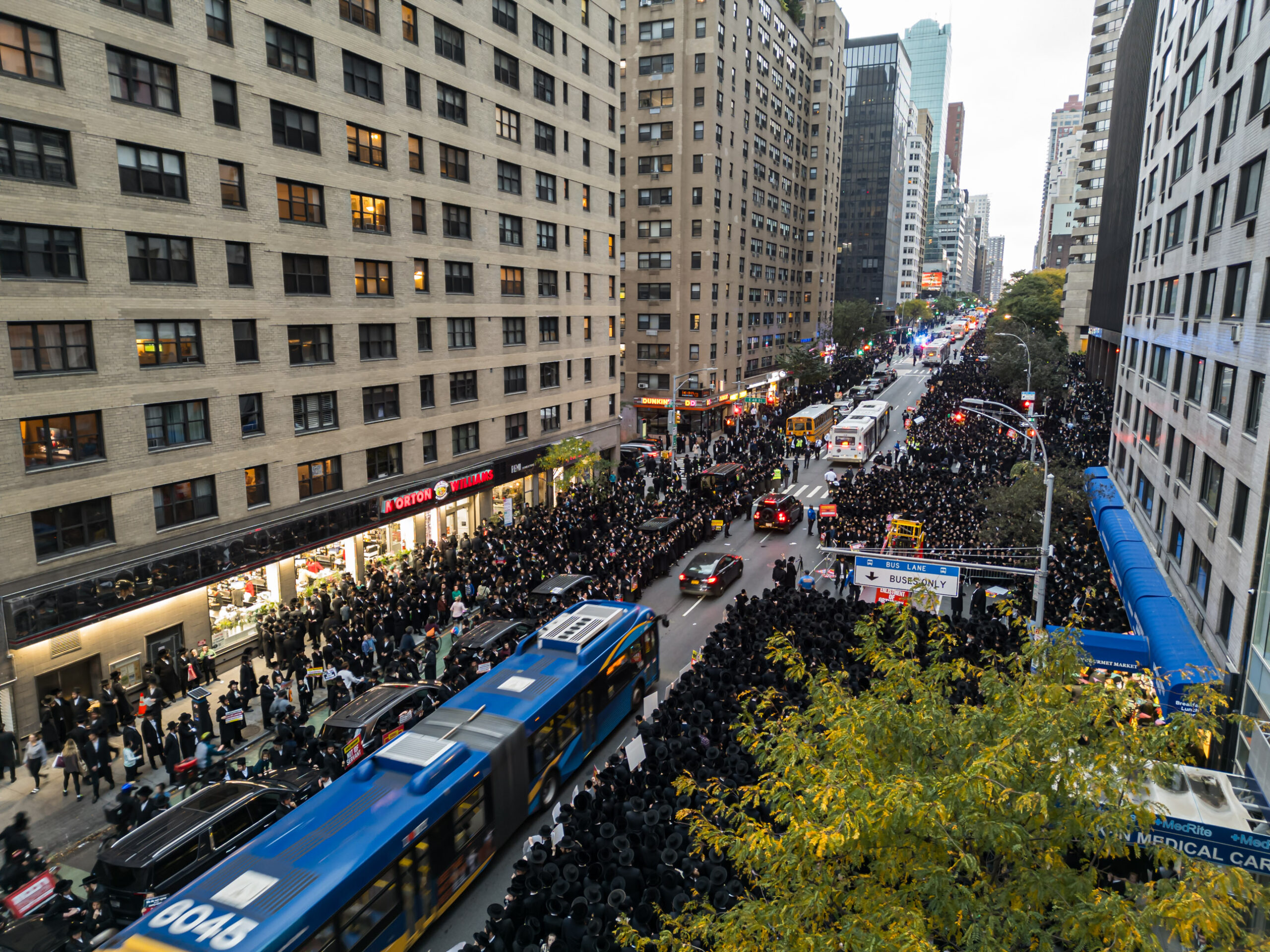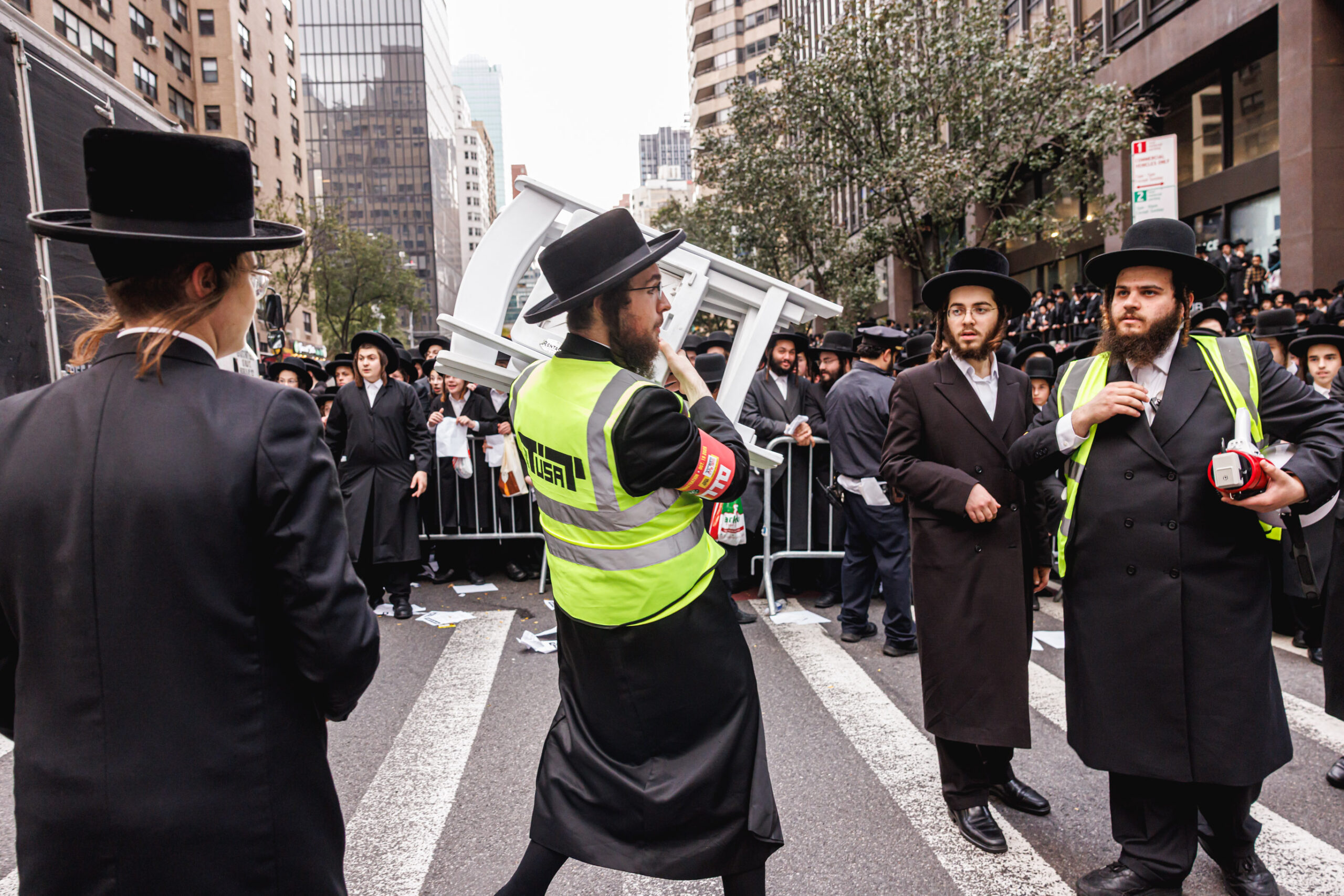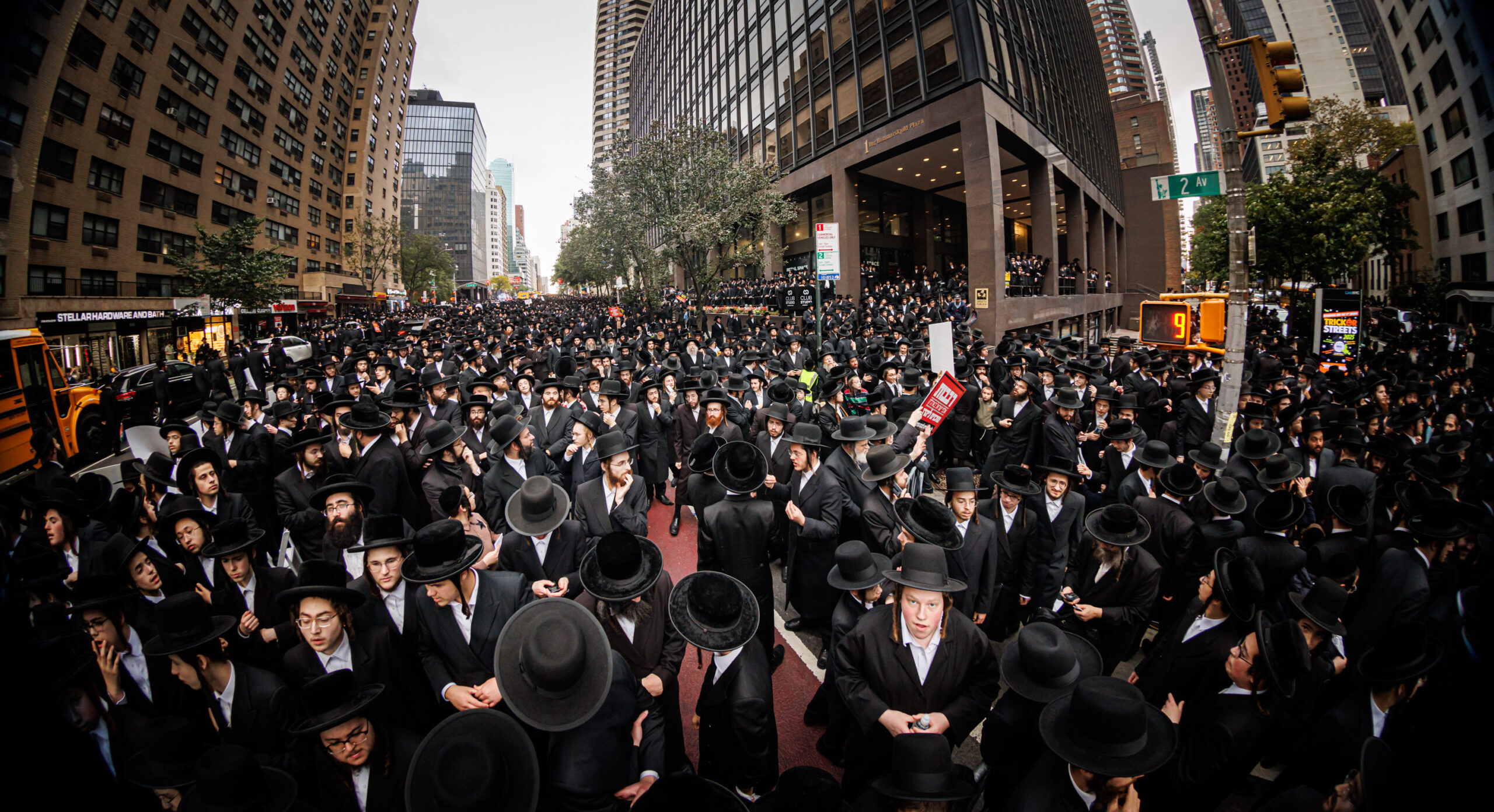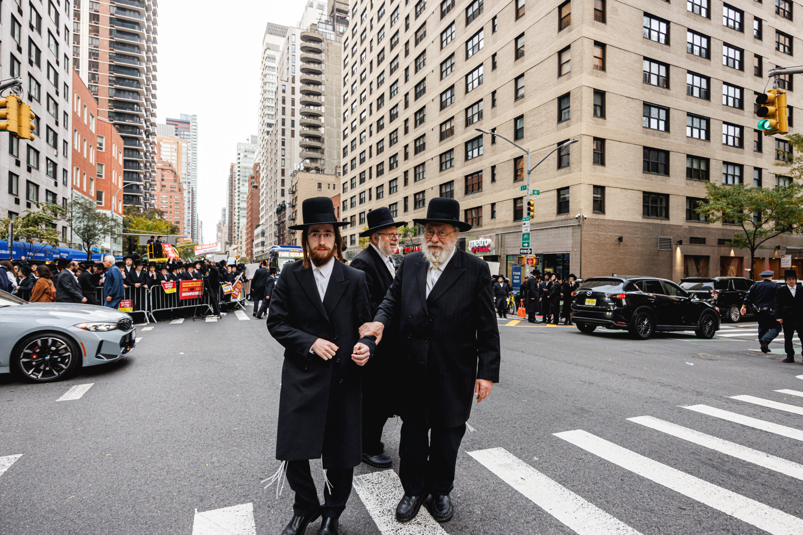 כחלק מההסכמה עם משטרת ניו יורק, השדרה המרכזית לא נחסמה והתאפשרה בה תנועת כלי רב, לצד המפגינים שעמדו על המדרכה לאורך עשרות מטרים. אל ההפגנה הגיעו האדמו”רים מסאטמר שליט”א, וכן האדמו”ר מבאבוב שליט”א, לצד רבנים וראשי ישיבות.