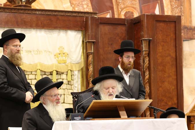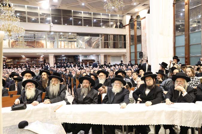 במשך קרוב לשעה הרחיב מרן פוסק הדור בדרשתו המסורתית בהלכה ובאגדה לפני אלפי המשתתפים, כאשר בחלק הקדמי של בית המדרש יושבים חברי בד”צ העדה החרדית, כ”ק האדמו”ר מדושינסקיא שבפשטנותו האופיינית ישב על אחד הספסלים כאחד מפשוטי העם, ועוד המוני מוצי”ם ורבנים מכלל קהילות הקודש של העדה החרדית.
