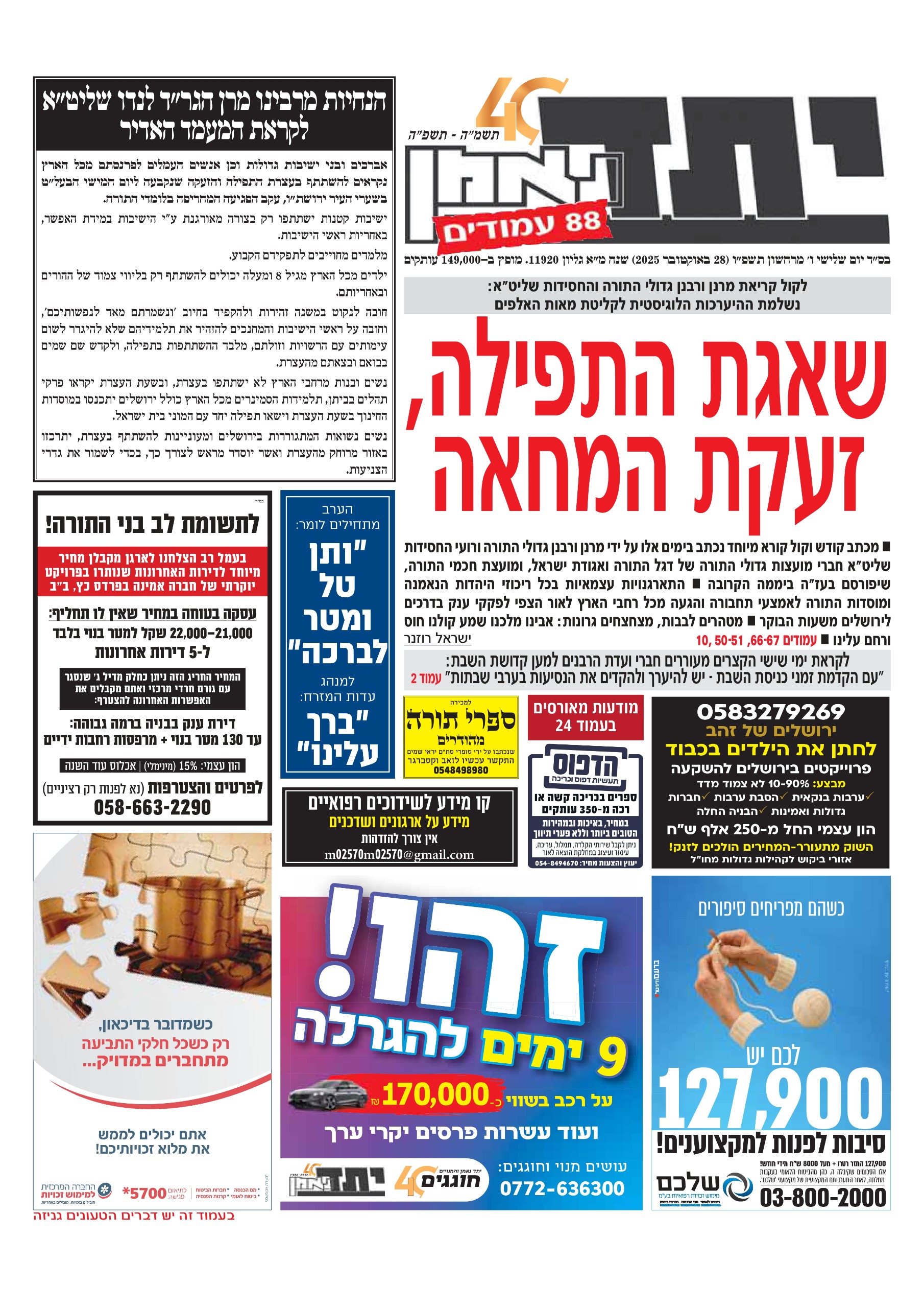 צפו בכותרות העיתונים החרדים לבוקר יום שלישי