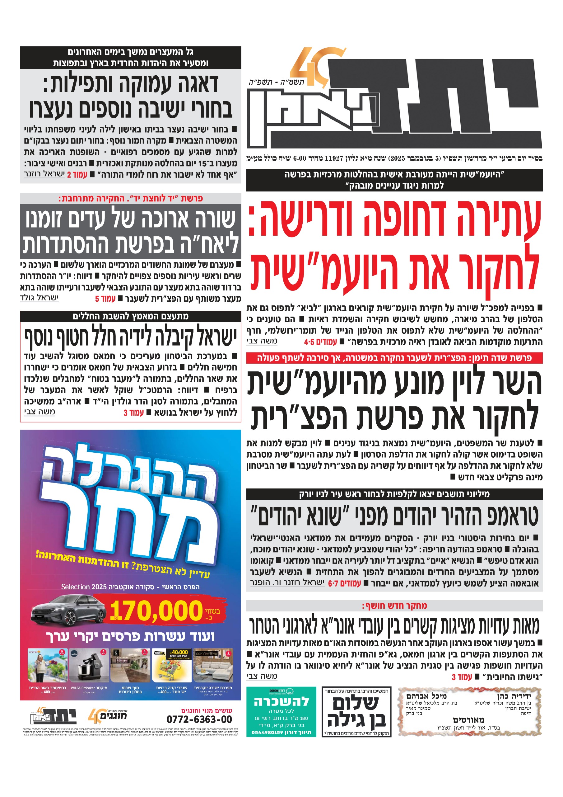 צפו בכותרות העיתונים החרדים לבוקר יום חמישי
