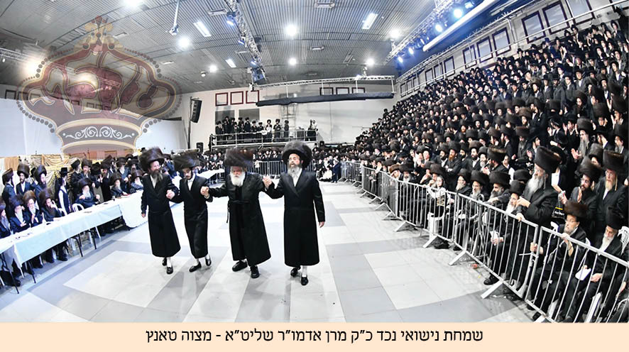 שמחת נישואי נכד כ"ק האדמו"ר מערלוי, החתן הרב ברוך בן הרה"צ רבי שלום צבי שליט"א חתן כ"ק אדמו"ר מקוסוב ויז'ניץ שליט"א עב"ג בת הרב הגאון רבי טוביה ליברמן שליט"א בן הגה"צ רבי יהושע ליברמן שליט"א ראש ישיבות שומרי החומות וחתן הגאון הצדיק רבי דב וייס שליט"א גאב"ד קרית צאנז ירושלים.