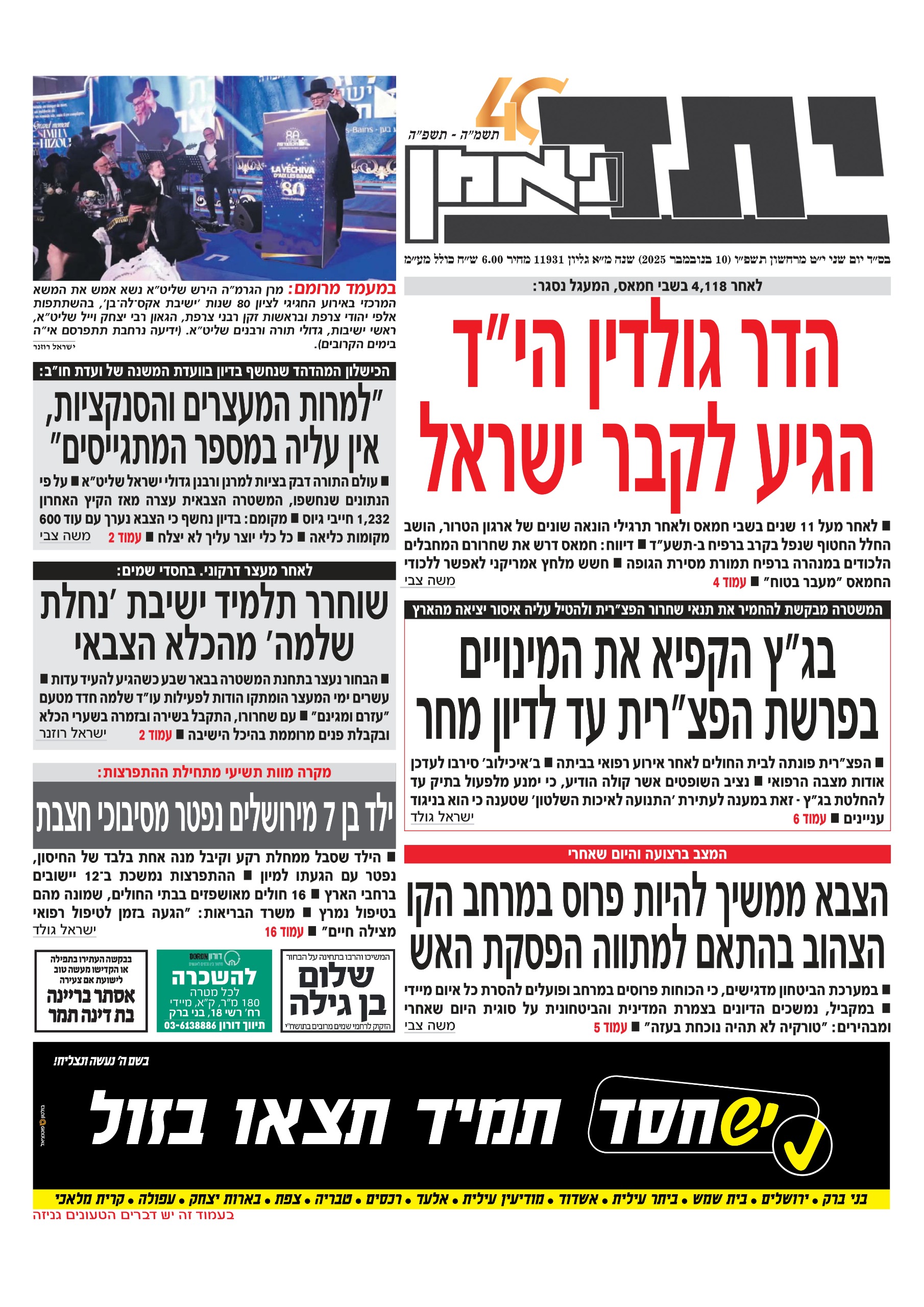 • צפו בכותרות העיתונים החרדים לבוקר יום שישי