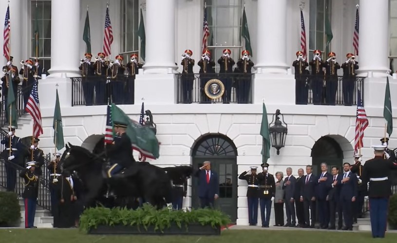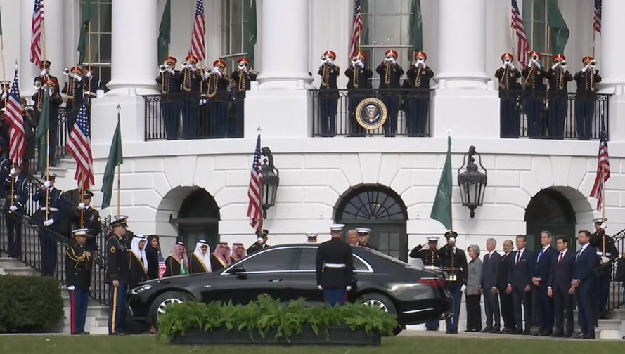 בכבוד מלכים שלא זוכה לו כל מנהיג, התקבל הערב (שעון ישראל) יורש העצר הסעודי מוחמד בן סלמאן, לביקור מיוחד בבית הלבן. קבלת הפנים המיוחדת כללה שטיח אדום בכניסה לבית הלבן, ירי ומשמר כבוד, ומטוסי קרב שחולפים בשמי וושינגטון. לאחר קבלת הפנים וסיור בבית הלבן המשיכו טראמפ ובן סלמאן לחדר הסגלגל ושוחחו עם העיתונאים.
