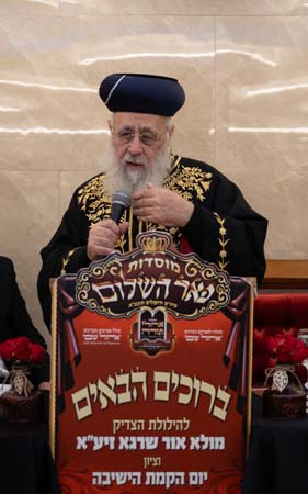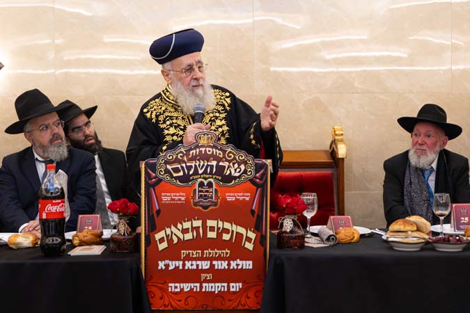 לאחר מכן, נשא הרב יצחק יוסף שליט”א משא תורה ומוסר שהותיר רושם עז. דבריו, שהיו עמוסים בהלכות ובסיפורים מעוררי השראה, התמקדו במעלת הצדיקים ובהמשך דרכו של בעל ההילולא, “המולא אור שרגא” זצ”ל, ובירך את ראש הישיבה, הרב יונה רפאלי, על הפעילות התורנית העצומה שמקיימת הישיבה. וצוינה במיוחד העלייה המרשימה והקבועה בכוחה של הישיבה בשנים האחרונות.
