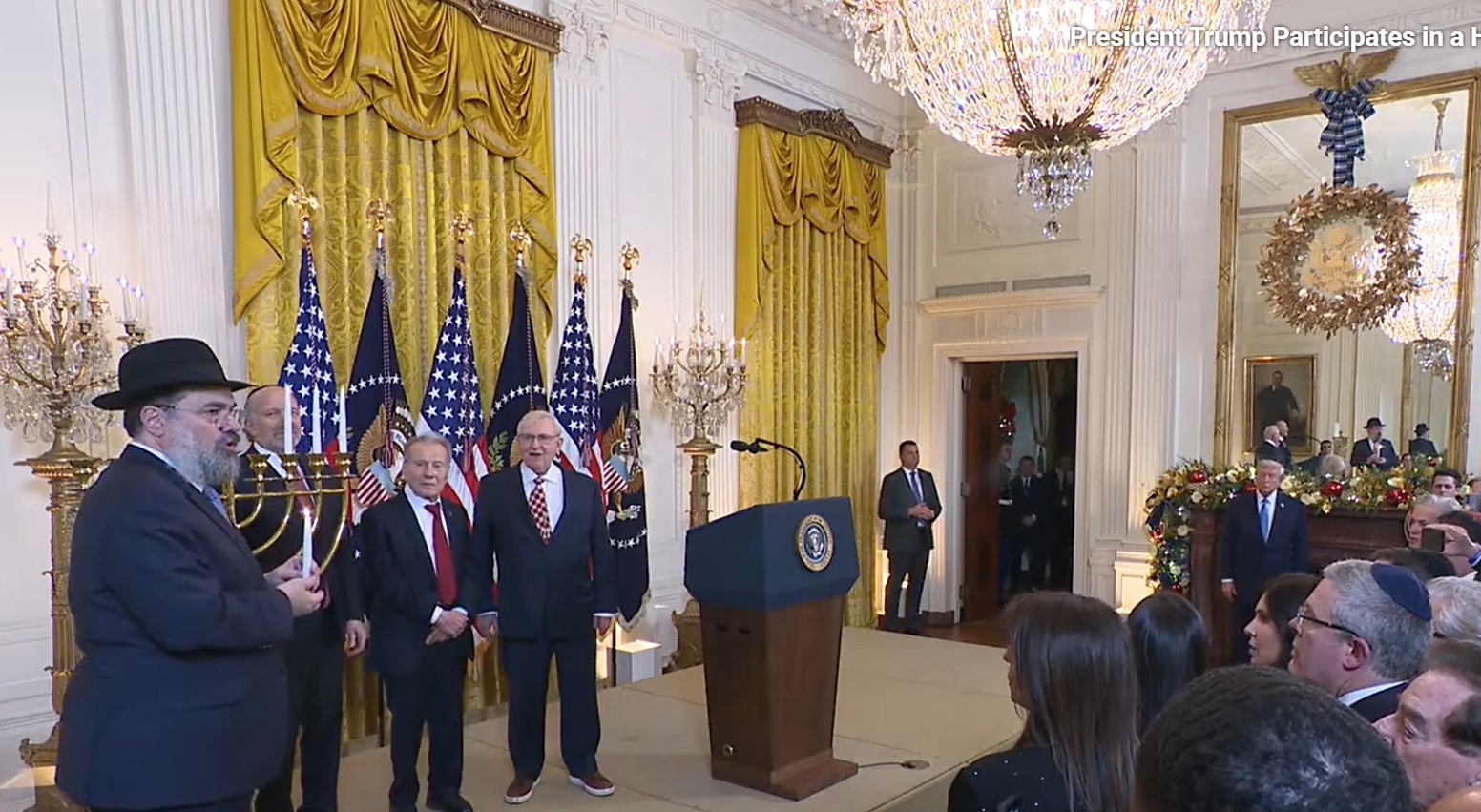 במסיבת החנוכה שנערכה אמש, הוזמנו בכירים בקהילה היהודית בארה”ב, ומי שהדליק את נרות החנוכה, היה שליח חב”ד בוושינגטון, הרב לוי שם טוב. הנשיא טראמפ נשא נאום קודם הדלקת הנרות ובין היתר גינה בדבריו את הפיגוע הקשה נגד הקהילה היהודית בסידני שבאוסטרליה.