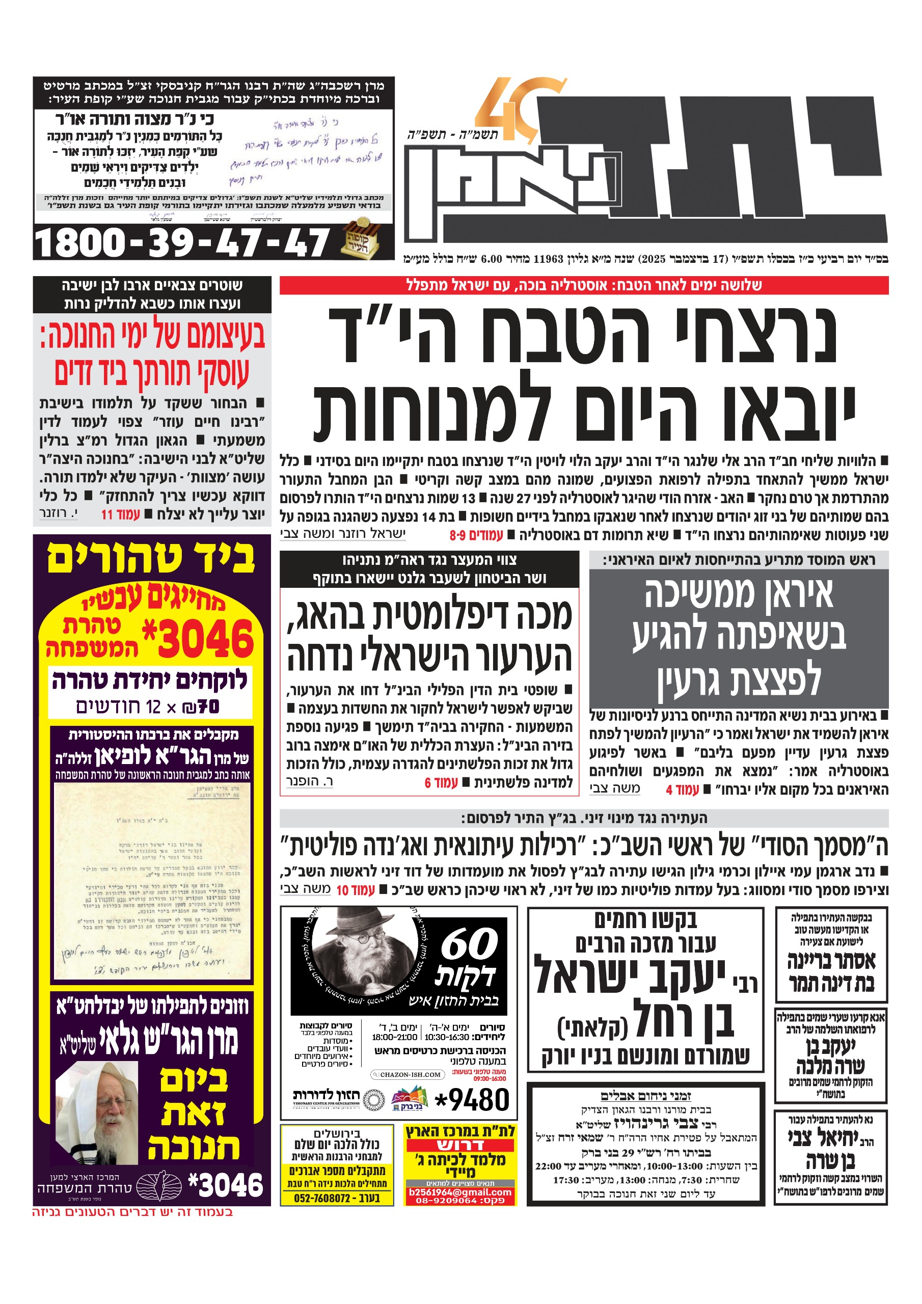 • צפו בכותרות העיתונים החרדים לבוקר יום ראשון